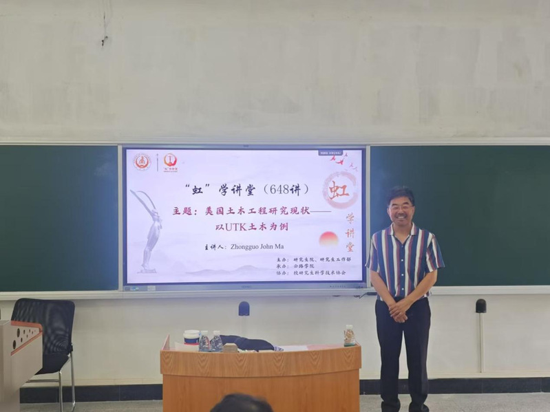 6月26日下午,由研究生院、研究生工作部主办,公路学院承办,校研究生科学技术协会协办的“虹”学讲堂第648讲在长安大学南校区北院b401教室顺利举办。美国田纳西大学Zhongguo John Ma教授作了题为“美国土木工程研究现状——以UTK土木为例”的报告,公路学院副院长韩万水教授主持,相关学院共180余名师生参加讲座。