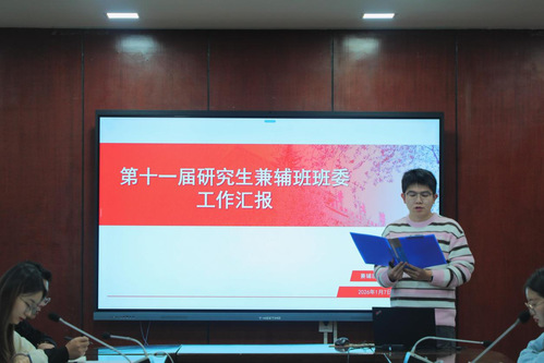 会议伊始,第十一届兼辅班副班长谷亚宁就本学期班级整体工作情况进行汇报,他系统梳理了兼辅班在月度考核、宣传成效、社会实践、活动组织等方面取得的进展与成果。