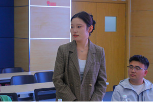 在社交礼仪经验分享环节,研艺团礼仪部主讲人贺冰玉从礼仪的背景和应用两个方面展开分享。她对坐姿、站姿和颁奖礼仪等基本礼仪知识进行了深入讲解,并邀请同学上台演示不同的礼仪规范,从而助力同学们在正式场合展现自信、得体的形象。